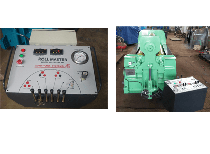 A tilt able control desk is conveniently located on machine. The main panel start / stop buttons and roll rotation fucntion (Reverse / forward) is provided on the same. The Top roll left side position and right side position are indicated separately by two digital meters.