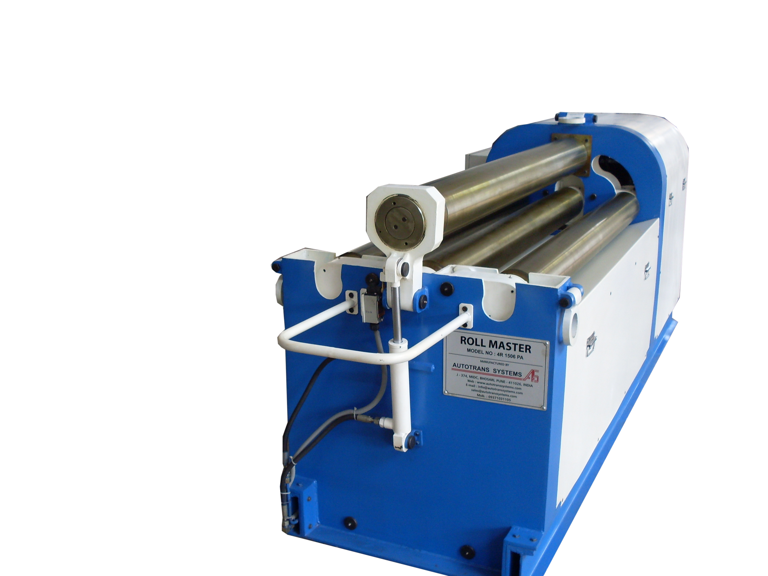 A specially designed & built mechanism allows drop end frame to tilt down in horizontal position without much efforts (one person can perform job). No need to dismantle frame from main body like in conventional machine. The top roll can be tilted to great degree of inclination making it most convenient and ease to remove rolled shells without any difficulty.