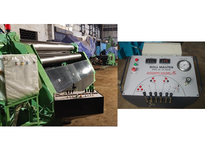 A tilt able control desk is conveniently located on machine. The main panel start / stop buttons and roll rotation function (Reverse / forward) is provided on the same. The Top roll left side position and right side position are indicated separately by two digital meters